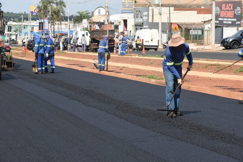 A pavimentação da Avenida Necker Carvalho Camargos segue em ritmo acelerado e já está na fase final de execução. De acordo com o secretário municipal de obras, Thiago Vasconcelos, a equipe trabalha na aplicação da camada asfáltica de 5 centímetros de espessura, etapa que representa o acabamento definitivo da pista. A previsão é de que essa fase seja concluída nas próximas duas semanas.