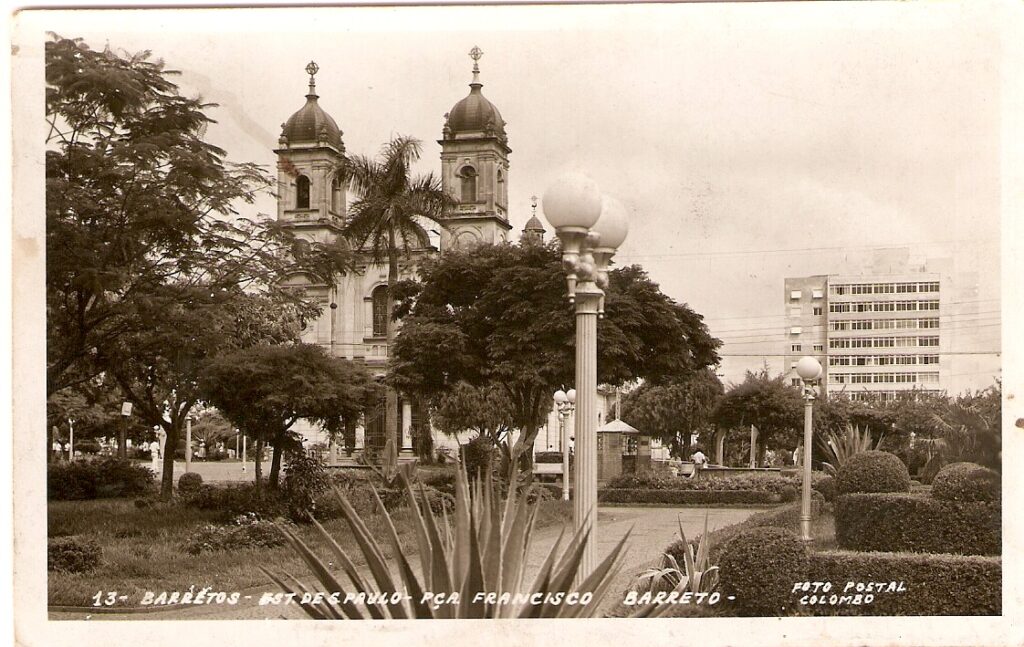 Os cartões-postais revelavam uma Barretos em plena metamorfose, uma cidade que se despedia lentamente de sua vocação rural para vestir-se com os trajes da modernidade. Nas imagens, surgiam estabelecimentos comerciais em expansão e fachadas que anunciavam progresso, compondo o retrato de uma urbe que se queria promissora. Mais do que simples registros, esses postais funcionavam como espelhos seletivos: mostravam o que deveria ser lembrado e ocultavam o que não cabia na narrativa do progresso. A repetição insistente das mesmas praças, casarões e avenidas, escolhidos e divulgados em massa, acabava por fixar uma memória coletiva e uma identidade urbana idealizada. Assim, cada cartão não apenas descrevia Barretos, mas moldava a forma como ela seria reconhecida, celebrada e, em certa medida, sonhada.