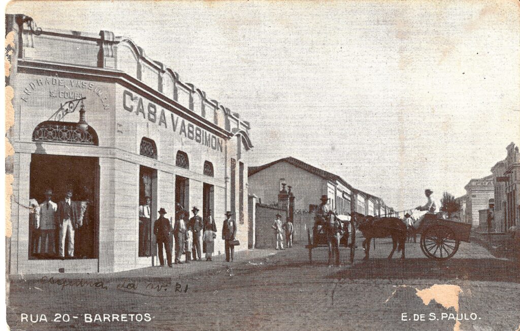 Nesse período, os cartões-postais tornaram-se verdadeiras ferramentas de marketing urbano. Diversos exemplares retratavam ruas, comércios e casarios, compondo a imagem de uma Barretos que se modernizava e se promovia por meio da fotografia impressa. Dois belos casarões, ainda preservados, destacam-se nesse cenário. Construídos em 1912, situam-se na esquina da avenida 23 com a rua 18. O palacete que hoje pertence à associação Os Independentes foi erguido para residência do Major Elyseu Ferreira de Menezes e permanece como testemunha da riqueza ornamental de sua época. O casarão em frente, por sua vez, ostentava cenas paisagísticas pintadas nas paredes externas, infelizmente soterradas por camadas de tinta ao longo dos anos. As molduras, porém, resistem como guardiãs silenciosas, lembrando que ali já se abrigaram belas obras de arte. Mais tarde, o edifício ganhou uma platibanda, seguindo os modismos arquitetônicos da época. Afinal, até os casarões gostam de estar na moda.